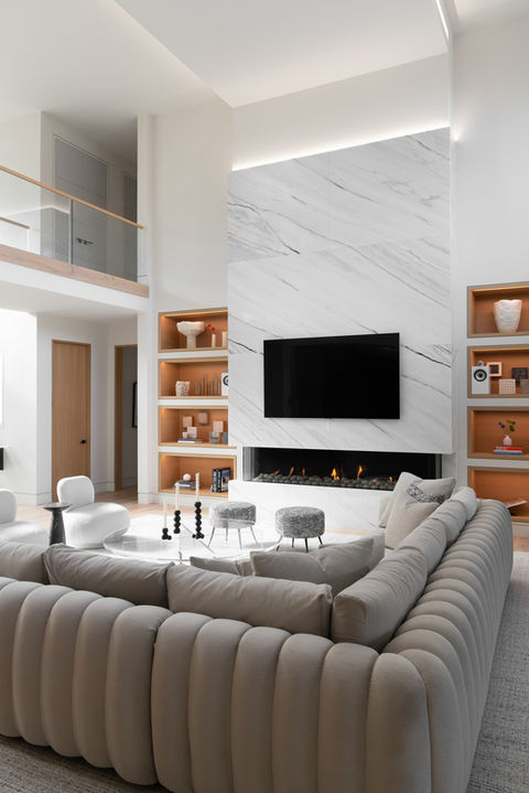 This luxurious modern home by Moore Custom Homes combines sleek architectural elements with functional design, creating a living space that is both stylish and practical. The exterior's crisp lines and expansive windows—supplied by Bolyard Lumber & Design—contribute to its striking facade, allowing natural light to flow throughout the home.